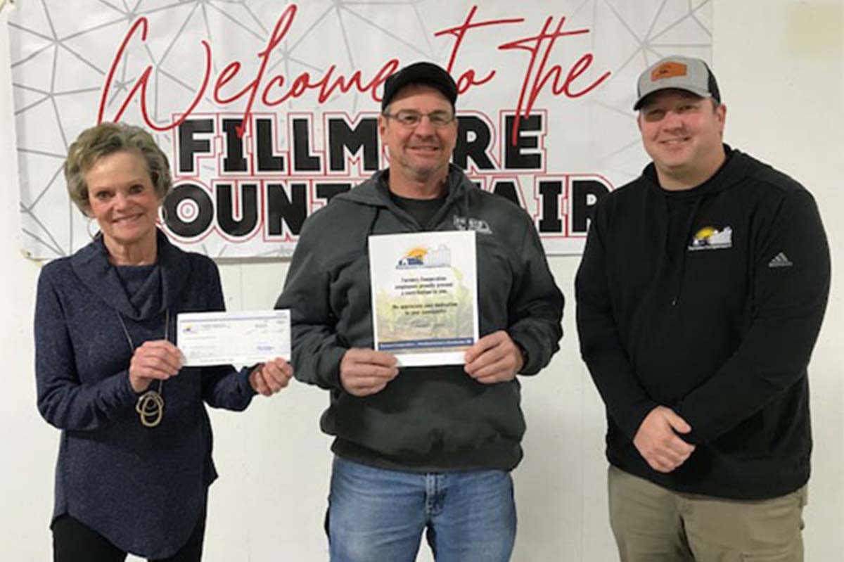 Pictured from left to right: Debbie Hoarty, President of Fillmore County Ag Society; Don Bristol, Vice President of Fillmore County Ag Society; Jack Galusha, Agronomy Sales Associate at Farmers Cooperative.